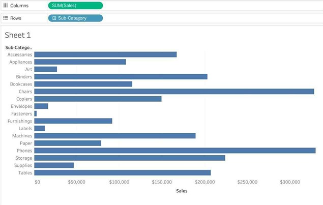 When you add a measure to the view, Tableau automatically aggregates its values. Sum, average, and median are common aggregations; for a complete list, see List of Predefined Aggregations in Tableau.