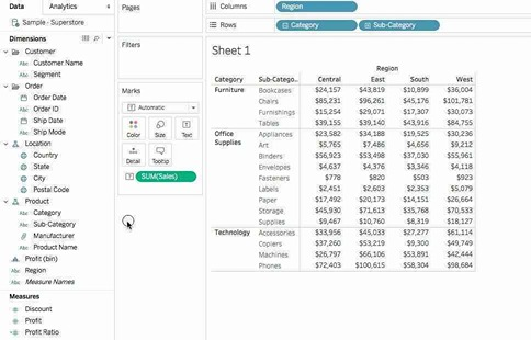 2.2) Drag Sales to the Text icon in the Marks Card: