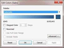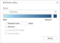 When you drop a discrete field on Color in the Marks card, Tableau displays a categorical palette and assigns a color to each value of the field.When you drop a continuous field on Color, Tableau displays a quantitative legend with a continuous range of colors.Web version:  Desktop Version: For more information about color palettes, see Color Palettes and Effects.
