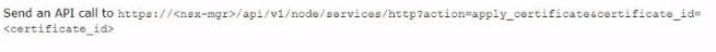 Send an API call to https://<nsx_mgr_vip>/api/2.0/services/trustmanagement/cluster_certificate/install?cluster_certificate_id=<certificate_id>